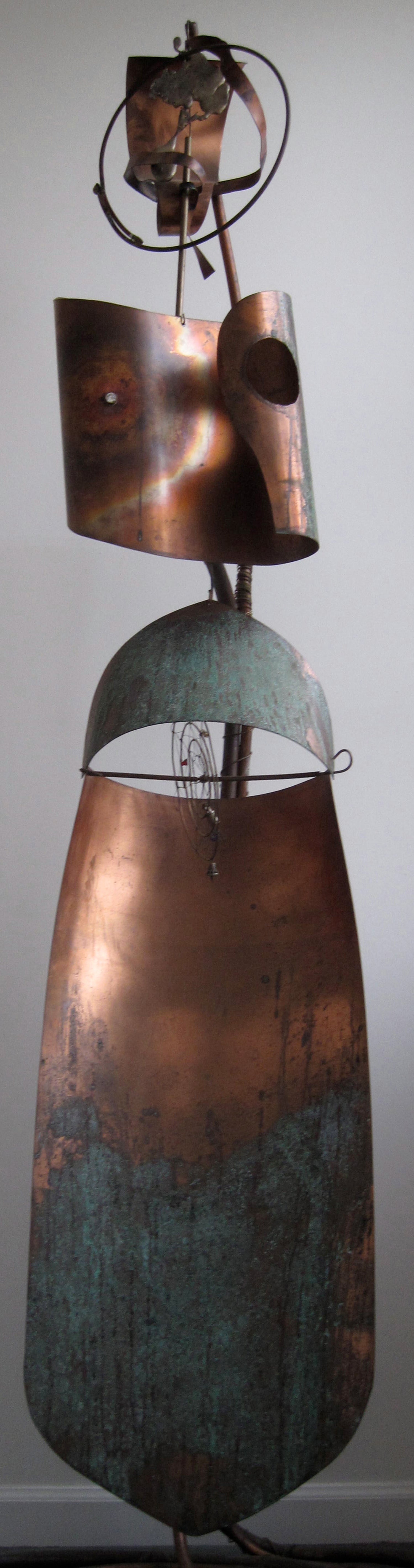 copper, brass, glass, stones, found objects